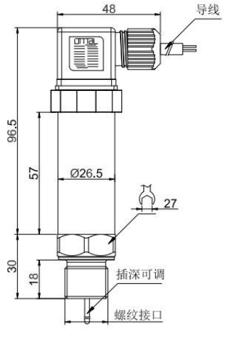 温度变送器可直接安装在测量点上。连接螺 纹:M20*1.5、G1/2、G1/4、M14*1.5。特殊螺纹或法兰 请联系业务员。